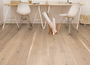 Natürlich schön: Dreischichtfertigparkett im Dekor Eiche Village Weiß. Jede Planke mit Strukturen, Astmarken und Farbverläufen, die jahrzehntelange Witterungseinflüsse und Wachstumsprozesse protokollieren.